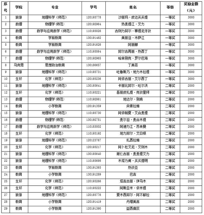 “2014年大学生君远奖”近日揭晓,我校沙丽玛•皮达买买提等29名学生荣获上海唐君远教育基金会2013—2014学年西藏新疆少数民族优秀师范生君远奖学金。