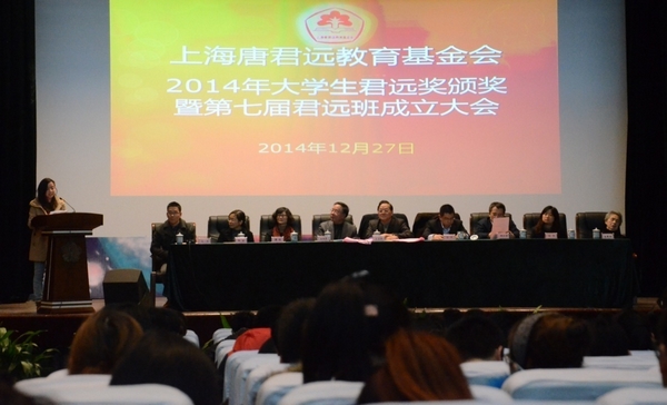 会议由上海唐君远教育基金会理事陆勤主持,上海唐君远教育基金会常务副理事长王生洪,秘书长金同康等出席大会,我校教育发展基金会及获奖学生参加了本次颁奖仪式。