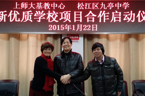 基教中心与九亭中学“新优质学校合作项目”签字仪式上,九亭中学校长陶伟红介绍了学校发展、项目合作的基本情况。子项目领衔专家、上海师大教育学院教授陈建华和丁念金,分别就“学校发展规划的研究和制定”和“个性化分层教学的实践研究”中基本理念、基本步骤、基本要求等作了初步的说明。仪式之后,陈建华、丁念金、上海师大教育学院副教授李霞等立即开始了项目研究的基础性工作,就校情分析、理念提炼、传承发展等,和九亭中学中层以上干部进行了深入的交流和沟通。