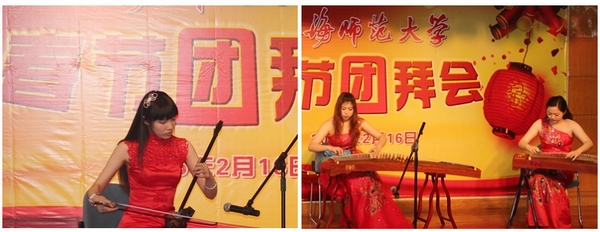 团拜会场里热烈、喜庆、祥和。与会校领导和师生员工欣赏了精彩的文艺演出:有音乐学院学生送来的男女生独唱,小提琴、二胡、古琴演奏,舞蹈表演;有教工合唱团的女声合唱、男女生小组唱,校京剧雅韵社的离休老同志送上的京剧演唱;还有退休教师的“脱口秀”表演。大家在热情欢快、喜气洋洋的氛围中畅叙友情、共话发展、喜迎新春。