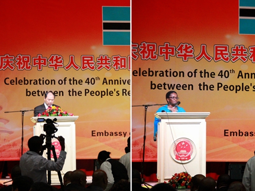 2月10日,中国驻博茨瓦纳使馆在博茨瓦纳首都哈博罗内举行庆祝中国和博茨瓦纳建交40周年招待会,中国驻博茨瓦纳大使郑竹强、博茨瓦纳外交与国际合作部长文松、外国驻博使节、博各界友好人士及旅博华侨华人和中资机构代表等共350余人出席。