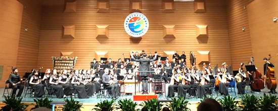 我校民乐团是由我校音乐学院艺术专业学生组成的学生民族管弦乐团,该乐团由我校音乐学院民族器乐专业金叶、刘扬、吴旭东三位教师指导并进行定期排练,同时邀请上海民族管弦乐团著名指挥姚申申作为乐团特邀指挥。我校民乐团建团成立至今已走过十个年头,秉承着传播中国传统音乐的理念,不断精益求精,其演奏水平逐渐被社会及业内专家所认同,成为上海大学生民族管弦乐团领域的佼佼者。本次为了能够以更加震撼的节目参加集中展演活动,乐团师生牺牲春节假期在学校集中排练,克服各种困难,对节目进行深度加工,力求以最好的节目质量参加全国大学生艺术展演。在比赛现场,由我校民乐团演奏,谭盾作曲的《西北组曲第一、第四乐章》得到了现场观众和评委的一致好评,并获得全国第四届大学生艺术展演器乐类专业组一等奖。