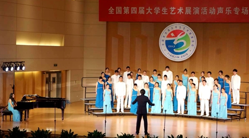 由教育部主办的全国第四届大学生艺术展演于3月2日在天津落幕,由我校音乐学院艺术专业学生组成的上海师范大学青年民族管弦乐团(专业乙组)和由我校非艺术类专业学生组成的大学生合唱团(业余甲组)通过校艺术中心组织报送、上海市教委选拔、教育部专家评审入围参加本届大学生艺术展演集中展演活动,并分别喜获所在组别一等奖。这是我校首次有艺术团入选参加全国展演集中活动,也是我校在此项活动中取得的历史性突破成绩。