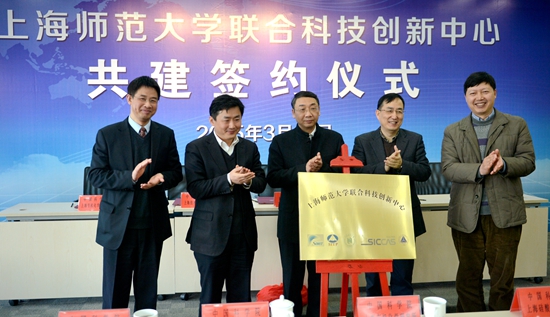 会上,我校与中科院上海微系统与信息技术研究所、中科院上海技术物理研究所、中科院上海硅酸盐研究所和中科院上海有机化学研究所签署“上海师范大学联合科技创新中心”合作共建协议,协议单位代表为中心揭牌。