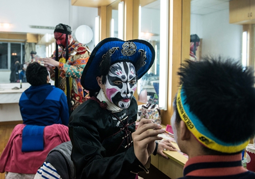 互动环节中,同学们都争先恐后想上台尝试一番。在换装互动过程中大家了解到扮武生的演员要穿胖袄、护领、胯衣、下甲、大靠等近十件衣服!而且那神气十足的眉毛竟然不是画的,而是靠勒头、网子吊出来的,勒得很紧,通过话筒观众们都能听到用力勒绳子的撕扯声。演员们看现场气氛热烈,又找了两位观众帮他们“美容”,再次出场时,完全认不出之前的模样了,他们也落落大方,摆好身段,很有气势的自报家门,引起了全场观众的掌声和叫好声。被“美容”的两位学生观众在退场后接受采访时表示,这样的体验很有意思,同时也体会到了演员的辛苦。当被问道还想不想再来一次的时候,他们爽快地回道“当然来!”