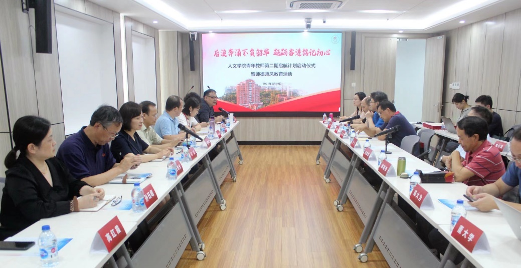 9月29日下午,人文学院“后浪奔涌不负韶华,砥砺奋进铭记初心”青年教师第二期启航计划启动仪式暨师德师风教育活动在文苑楼408室举行。学院党政班子成员、教研和思政导师以及新进教师等参会。会议由学院副院长姚潇鸫主持。