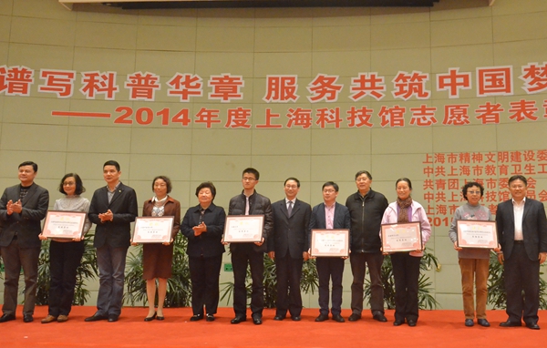 3月28日,上海市精神文明建设委员会办公室、上海市教育卫生党委系统精神文明建设委员会、共青团上海市委员会、中共上海科技馆委员会、上海市志愿者协会联合召开“志愿谱写科普华章,服务共筑中国梦想——2014年度上海科技馆志愿者表彰大会”,会上,我校被授予“2014年度上海科技馆志愿者活动优秀集体”称号。全国政协常委、上海科技馆理事会理事长左焕琛等为获奖高校代表颁奖,多名志愿者被评为“优秀志愿者”。