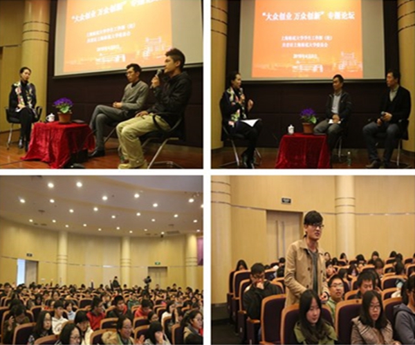 4月8日下午,以“大众创业 万众创新”为主题的形势与政策课“一月一讲”在奉贤校区图文二楼报告厅举行。上海市教委学生处副处长李长治,上海市大学生科技创业基金会天使基金负责人黄冠仪,上海天橙传媒文化传播有限公司创始人、校友陈嵩,上海卡呆呆餐饮管理有限公司创始人、校友郑章书作为嘉宾应邀为学生讲解形势、解读政策,分享经验,释疑解惑。学工部、校团委相关负责人和各学院200余名学生一起参加。谢晋影视学院教师姜杉应邀主持。