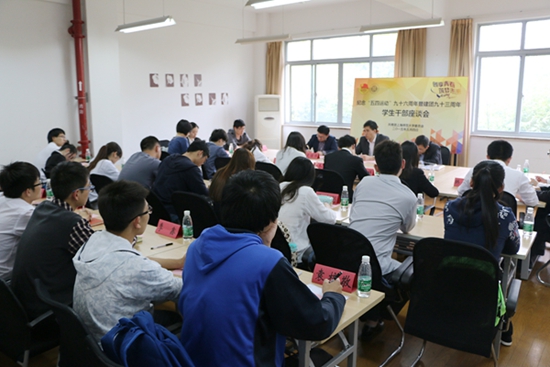 校党委书记滕建勇、副书记葛卫华在青年节当天与师大学子们深入座谈,座谈会上,各学院学生代表畅所欲言、各抒己见,就“骨干教师教学激励计划 ”的实施效果、学科专业实习与课程安排、如何提高文科学生的科研能力、校园基础设施建设等问题与校领导沟通交流。