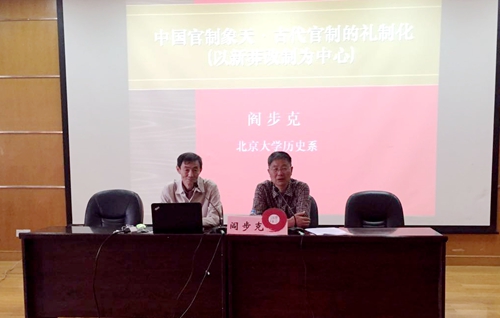 阎步克教授《官制象天:中国古代官制的礼制化》的学术报告,是他在《士大夫政治演生史稿》、《乐师与史官》、《服周之冕》等几部研究士大夫政治、中华礼制与政治权力、社会、人生乃至服饰之间关系的著作基础上,更加深入研究中国古代官制与礼制关系的新成果。官制的设计,通常有两个原则和目标,一个是分配功能、保证效率,一个是分配权力、安排地位;而阎步克指出,中国古代还有一种官制思想,寻求制度形式的自身完美性,如样式的对称、和谐、美观、数列化,官名的神圣、优雅、吉祥等等,以期与天地同构、体现宇宙法则。王莽官制改革背后的思想动因,就是基于董仲舒“官制象天”理论,其依据是宇宙原理和儒家古礼,是一种高度形式化、礼制化的官制改革。阎教授引经据典,对五部125郡的“四方体制示意图”、天凤年间“保灾图”、“《诗》国十五”等史料的释读极其精彩,给在座师生作了一次完美的学术研究演示。