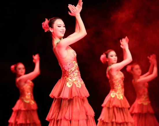 整场演出运用了不同的舞蹈风格和舞蹈语言,充分表现出“弘扬民族文化,展现时代风采”的主题思想。其中舞蹈《水》采用了傣族舞蹈的元素,表现少女踏着柔美的步履,宛如春的使者走向观众;《金舞银狮》尝试将当代流行舞的元素与上海马桥手狮舞相结合,展现了一派热闹欢腾的喜庆气氛;压轴群舞《向春天远航》气势澎湃,颇有难度的托举造型如高昂的船头,鼓动的大块蓝绸如汹涌的大海,表现出当代大学生满怀梦想,青春勃发,向着未来高扬起人生风帆一往无前的精神风貌。整场演出精彩纷呈,赢得台下掌声经久不断。演出不仅吸引了大量的本校师生,也引来海湾其他高校学子和当地居民的观赏。