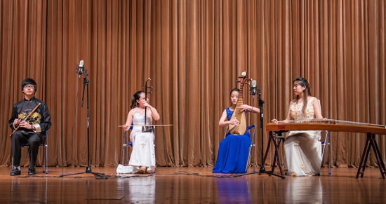 而5月13日的民乐音乐会则是特别为奉贤校区学子打造的一台民乐普及专场演出。不久前刚从第四届大学生艺术展演中载誉归来的我校青年民族管弦乐团选派精兵强将担纲演出。演员们通过展示具有代表性的传统民族乐器和经典民乐曲目,穿插音乐学院专业教师深入浅出的解说和知识介绍,将竹笛的欢快、古筝的空灵、埙的凄婉、二胡的悠扬、琵琶的铿锵一一淋漓尽致地表现出来。演奏的作品中,琵琶独奏曲《绿幺》创作于唐朝,而乐器笛子则诞生于距今约9000年前的中华大地上。台下数百名师大学子感叹于中华文明的灿烂和悠久,在动听的乐曲声中神游于中华历史文化长河。