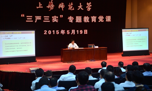 5月19日下午,学校“三严三实”专题教育正式启动,校党委书记滕建勇为全校领导干部作“三严三实”专题教育党课报告。全体校领导及处级干部250余人出席。校长朱自强主持专题党课报告会。