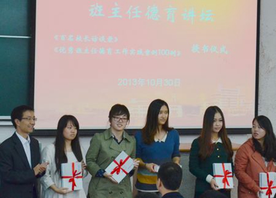 《优秀班主任德育 实践工作案例100例》授书仪式