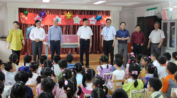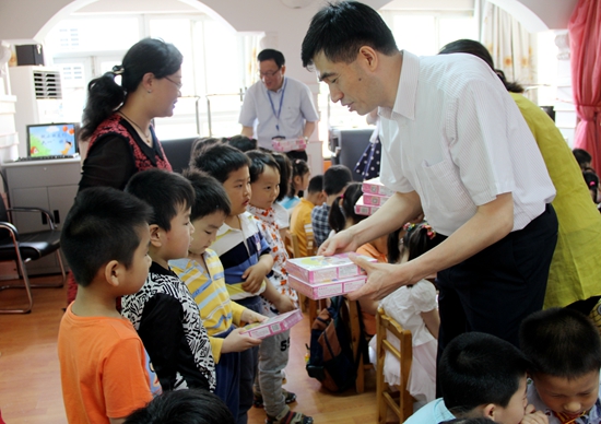 6月1日的上师大幼儿园布置得绚丽多彩,孩子们的脸上洋溢着节日的喜悦。上午8点半,校党委书记滕建勇、副校长高建华、校办主任蒋明军、资产管理与保障处处长张峥嵘、人事处处长陈昌来、后勤实业中心主任顾中忙和党总支书记钱成一行7人来到幼儿园,为孩子们送上了节日的祝福。