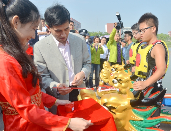 6月6日上午,由校工会主办的第四届教职工龙舟比赛在华东理工大学通海湖举行。全校24个院系部门组织队伍参加了比赛,为历届之最。校领导滕建勇、高建华、柯勤飞出席。开幕式暨点睛仪式由副校长柯勤飞主持,校党委书记滕建勇做动员讲话并宣布比赛开幕。之后,全体校领导走到湖边为龙舟点睛,并与教职工一起观看了精彩赛事。