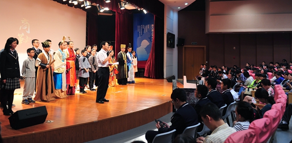 影视学院院长赵炳翔被邀请走上舞台发言。他说,戏剧教育作为素质教育中重要的艺术形式,因为匮乏的师资使得本来在许多欧美国家早已是普及的素质教育载体被冷落了,在我国的中小学中音乐、美术远远走在了戏剧的前列,而戏剧恰恰是中小学生,尤其是90、00后独生子女养成团队合作精神、解放天性的良好途径。为此,作为师范大学的影视学院有责任、有义务、有信心做好戏剧教育的师资准备工作,为未来戏剧教育进中小学铺就道路。上海市实验学校校长徐红按捺不住激动的心情,感谢我校影视学院六年来对于该校戏剧课程开展的指导。