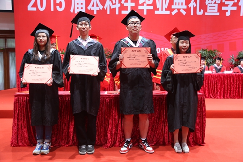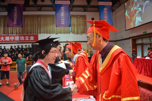校长朱自强教授在毕业典礼上深情致辞,他寄语毕业生要牢记使命,勇担责任;勤学不辍,追求卓越;珍爱生活,身心健康。共青团市委书记徐未晚作为校友代表和学弟、学妹们分享自己的成长经历,希望毕业生们做有志青年,在实践中国梦中成就自己的精彩人生。全国优秀教师周中之教授作为教师代表发言,他围绕如何做人、如何做事,向毕业生们叮咛嘱托。本科阶段应征入伍两年、即将赴甘肃玉泉支教的信息与机电工程学院毕业生钱程代表毕业生发言。他说,之所以会在大学应征入伍、报名参加研究生支教团都源于自己有着一个想参军、想支教的梦想。为了保卫祖国晚两年本科毕业没关系,为了边远地区的孩子们再晚一年研究生毕业也愿意。