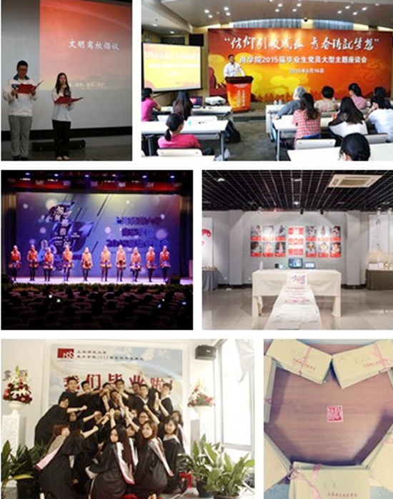 人文与传播学院、教育学院通过学院官方微信,发布毕业季专题纪念帖,向毕业生表达祝福。商学院开展“笙歌起 毕业颂”毕业季系列主题活动,先后召开了优秀毕业生代表举办座谈会,举行了“信仰引领成长 青春铸就梦想”2015届毕业生党员大型主题座谈会,并通过向全院毕业班级征集“最难忘瞬间”的图片集,制成了电子杂志作为礼物送给毕业生。外国语学院将2015届本科就业、出国、国内考研、基层就业的优秀案例,汇集成《优秀校友案例集》进行展示,并成功举办“恰同学少年扬帆航·看青春梦想齐绽放”毕业晚会。美术学院在无形画廊先后举办了毕业画展、毕业书法展、毕业设计展等本科毕业生作品展,向全校展示了各专业的优秀毕业作品和设计。谢晋影视艺术学院向全校师生献演毕业大戏。音乐学院为全校同学奉献了“匆匆那些年——2015届毕业晚会”,毕业生们用美妙的歌声、琴声和舞蹈汇报所学、展示成果,学院还为每一位毕业生赠送了《毕业纪念册》留念。教育学院进行了专场毕业汇报表演,展示专业技能。数理学院毕业班的同学们将各类专业书籍留下,在学院建设了图书漂流角。对外汉语学院在毕业季中组织了“最喜爱的老师”评选活动,并在学院毕业典礼上进行了颁奖。