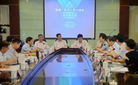 6月20日,“杨德广教授从教50周年学术研讨会”在我校外宾楼101会议室召开。本次研讨会由中国高教学会高等教育专业委员会、上海市高等教育学会和上海师范大学联合主办。中国高等教育学会会长瞿振元,上海高等教育学会会长张伟江,南通大学党委书记成长春,上海师范大学党委书记滕建勇、校长朱自强、副校长柯勤飞、原党委书记陆建非以及来自全国各地高教界知名学者眭依凡、胡卫、陈昌贵、周川、胡建华、李硕豪等八十余人参加了会议。会议由中国高等教育学会高等教育学专业委员会理事长、华中科技大学教育学院院长张应强教授主持。