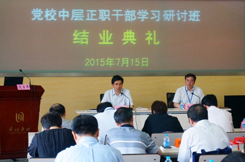 7月15日上午,党校中层正职干部学习研讨班结业典礼在会议中心2号报告厅举行。校领导滕建勇、杨卫武、秦莉萍、康年、高建华、柯勤飞、刘晓敏及全体中层正职干部70余人出席。