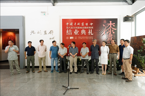 8月21日,汇报展览暨毕业典礼在我校美术学院画廊举行。出席结业典礼的有:中国美术家协会艺术委员会办公室主任咸懿,中国美术家协会漆画艺术委员会主任冯健亲,上海师范大学副校长刘晓敏,美术学院院长俞晓夫、党委书记周建平、执行院长刘旭光教授,中国美术家协会漆画艺委会秘书长李永清教授、吴嘉诠教授、吴可人教授、尹呈忠教授,漆画艺术家沈克龙先生,美术学院孟祥勇教授及全体高研班学员等,汇报展览由中国美术家协会漆画艺术委员会秘书长李永清主持。