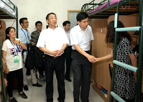 正在现场查看的校领导滕建勇、朱自强、葛卫华、柯勤飞、张峥嵘等也来到绿色通道,与困难新生交谈了解情况,并向他们赠送爱心大礼包等物品。随后,校领导来到13号宿舍楼,看望生环学院、商学院少数民族学生,关心入住情况,并鼓励他们好好学习,尽快适应大学生活。