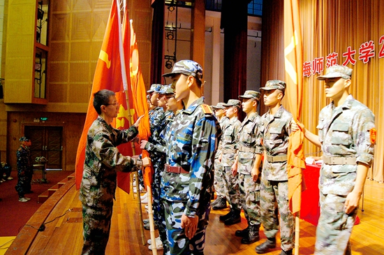 今年上海警备区和上海市教委要求各高校积极响应国家征集在校大学生入伍的要求,在新生军训中积极开展多种形式的征兵入伍宣传。军训师在我校新生报到期间开展了征兵宣传和咨询,同时重点搭建退伍兵学生群体的风采展示平台,从在校退伍大学生中选拔23名优秀老兵,组建“上海师范大学2015级新生军训师退伍兵纠察队”。动员会上,副校长张峥嵘为退伍兵纠察队老兵颁发了聘书。由优秀的大学生退伍士兵组成老兵纠察队,将在军训期间充分展示退伍大学生的风采与良好的精神面貌,增强他们在学生群体中的影响力和感召力,强化退伍大学生从单纯的学生个体转变为在校青年学生群体的行为示范者和思想引导者,引领更多的大学生携笔从戎,争作强国梦、强军梦的忠实践行者。