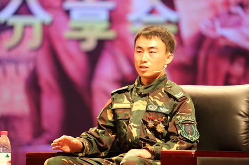 “在战争年代里,舍生忘死、奋勇杀敌是军人价值的最好体现,那么和平年代里,默默奉献、时刻准备便是军人最好的写照。”上海师范大学学生、退伍兵协会会长、曾服役于南京军区某部特种作战部队的穆亚明也以同龄人的身份,分享了他如何在部队实现自身价值的经历。特种部队枪械射击、海训、跳伞、攀登等科目强度很大,在常人看来很多是不可能完成的任务,而穆亚明却和其他90后战友一起勇于挑战,不怕艰难,出色的完成了每一项任务,展示当代青年大学生的风采。“强军梦”连着“青春梦”,我校一批又一批如穆亚明般的有志青年,携笔从戎,在部队的大熔炉中锤炼本领,为祖国繁荣富强奉献青春力量。