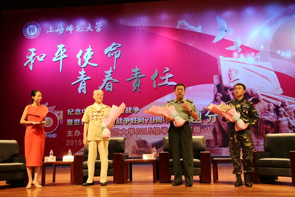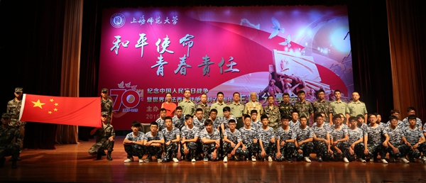 为纪念中国人民抗日战争暨世界反法西斯战争胜利70周年,进一步加强爱国主义教育和革命传统教育。9月3日,学校举行“和平使命,青年责任”主题分享会。军训师师长、上海警备区海防二旅副旅长朱永田,军训师政委、校党委副书记、副校长葛卫华等师部领导参加大会。整场分享会进行直播,军训师5000余名参训学生及指战员在现场、转播教室第一时间进行收看。