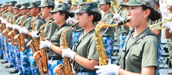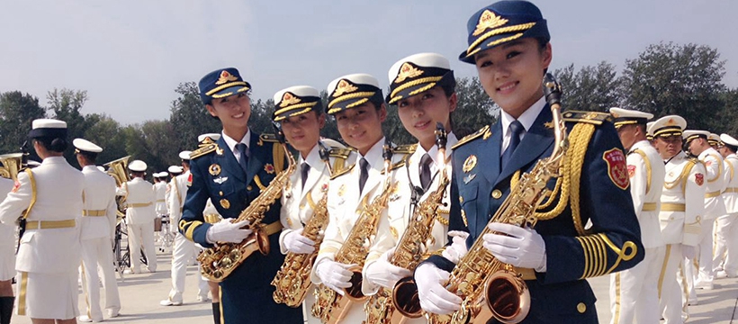 军乐团的号角,斩钉截铁,诉说忠魂,许下铿锵誓言。军乐团的号角,追寻使命,恪尽职守,见证铁骨铮铮。这支在胜利日大阅兵庆典当天第一个入场、最后一个退场的特殊部队中也有一位来自上海师范大学的女兵,她就是就读于我校商学院2010级法语专业,目前服役于海军东海舰队的奚青云同学(下图右二)。