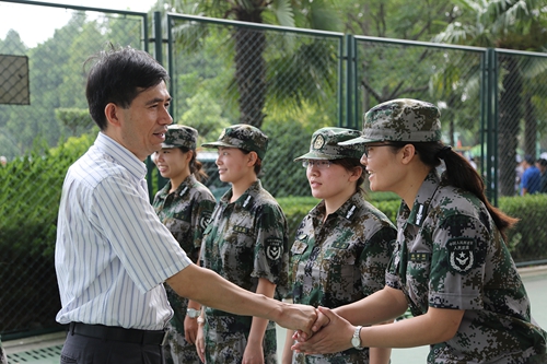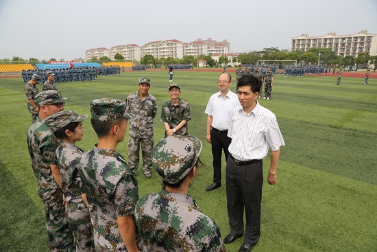 9月4日,校党委书记滕建勇,军训师师长、上海警备区海防二旅副旅长朱永田,校党委副书记、副校长葛卫华,副校长张峥嵘等领导亲切看望慰问2015级指战员及参训学生,相关职能部门负责人陪同。