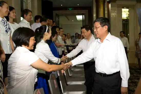 上海市委副书记、市长杨雄会见了2015年上海市优秀教师代表,包括今年全国和上海市教书育人楷模、全国师德标兵、上海教育系统全国先进工作者和上海市“五一劳动奖章”获得者。苏智良教授与我校全国师德楷模孙雅艳受到接见。杨雄与大家亲切握手,并代表市委、市政府向优秀教师代表以及全市广大教师和教育工作者致以节日的祝贺和诚挚的问候。(上图左二为孙雅艳)市委副书记应勇、副市长翁铁慧参加会见。