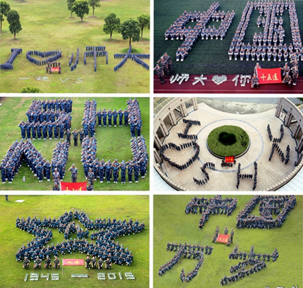 9月10日上午, 2015级本科新生在奉贤校区参加开学典礼暨军训总结表彰大会。5000余名参训新生迈着整齐的步伐接受校领导和军训师领导的检阅。军训期间,各连新生纷纷摆出各种造型方阵,表达对祖国、对师大的热爱之情。