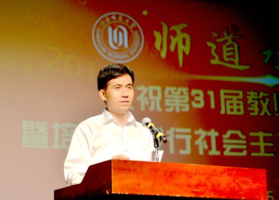 校党委书记滕建勇在讲话中指出,上海师大61年的发展历程,是一部奋进史、发展史。近年来,学校将“师道永恒”的师大精神融入到人才培养等方面,聚焦学生全面发展,强化教师师德建设,积极承担社会责任,取得了有目共睹的成绩。本次大会是教师节表彰大会,也是学校部署下一阶段精神文明建设工作的推进会。学校精神文明建设工作必须坚持以社会主义核心价值观为引领,以培育和弘扬社会主义核心价值观为着力点,突出核心价值观凝魂聚气强基固本的重要使命。培育和践行核心价值观,重在一抓到底、一以贯之,贵在落细、落小、落实。我们要努力把社会主义核心价值观融入教育教学、人才培养和管理服务全过程,让广大师生自觉将社会主义核心价值观内化于心、外化于行,为学校事业发展提供精神动力和思想保障,共同为教师教育特色鲜明的、立足于上海国际化大都市发展要求的高水平综合性大学而共同奋斗。