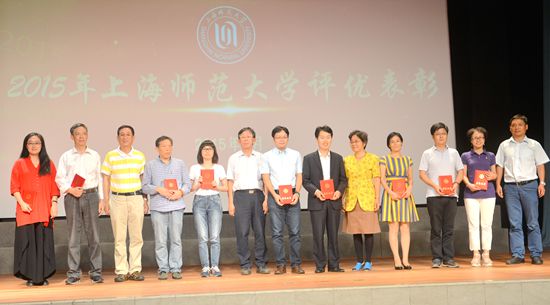 全国优秀教师、马克思主义学院周中之教授,“上海市五一劳动奖章”获得者、对外汉语学院齐沪扬教授,“上海市育才奖”获得者、谢晋影视艺术学院翁敏华教授,“上海市育才奖”获得者、旅游学院胡小猛教授作为嘉宾,为2015年度校优秀教师、校优秀教育工作者、校服务明星、第四届王乐三奖教金获得者颁奖;校领导杨卫武、葛卫华、康年、高建华、柯勤飞、刘晓敏、张峥嵘、曹光明共同为2013-2014年度校A级文明单位和2014年度校精神文明十佳好人好事获得者颁奖。