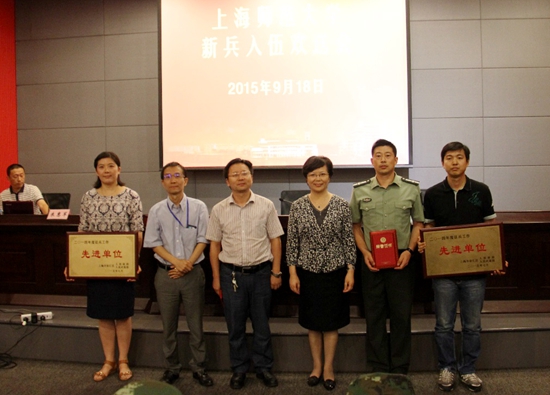 我校体育学院、建筑工程学院荣获了“2014—2015年度徐汇区征兵工作先进单位”荣誉称号;钟黎安同志和陆志军同志荣获了“2014—2015年度徐汇区征兵工作先进个人”荣誉称号。会上,校领导葛卫华、柯勤飞为先进单位和个人颁发了奖牌和证书并与入伍新兵合影留念。