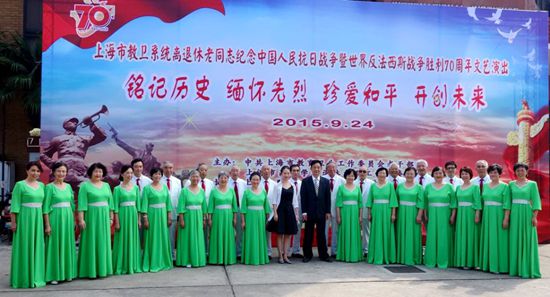 9月24日下午,中共上海市教育卫生工作委员会老干部处、上海市高等学校退休教职工管理委员会在上海财经大学举行“纪念中国人民抗日战争暨世界反法西斯战争胜利70周年”歌舞汇演。我校退休教师合唱团作为全市教卫系统遴选出的16个表演队之一闪亮登场,演唱了男女声小合唱《微山湖》和《弹起我心爱的土琵琶》。指挥是孙平川老师。音乐学院研究生夏蔚怡担任钢琴伴奏。这是我校退休教师合唱团继今年6月3日在全市25所高校退休教师纪念抗战胜利70周年歌舞汇演上获得“魅力”奖后的又一次成功演出。