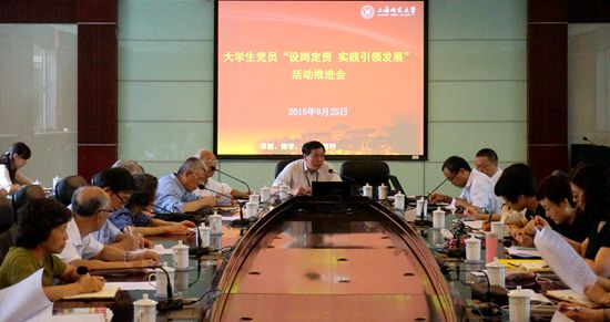 9月25日上午,大学生党员“设岗定责 实践引领发展”活动推进会在外宾楼101会议室召开。校党委组织部部长、党校常务副校长盛春,学生工作部(处)、武装部部(处)长朱惠军,学生党建巡视指导组成员,各学院党组织副书记、组织员、特邀组织员,学工部、研工部、组织部相关同志出席会议。会议总结了一年来在大学生党员中开展“设岗定责 实践引领发展” 活动所取得的成果,并对新学年的相关工作提出了要求。