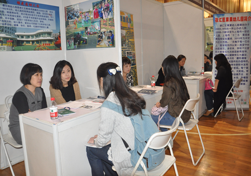 10月11日上午,我校2016届毕业生首场招聘会——徐汇区教育系统小学幼儿园专场师资招聘会在徐汇校区西部球类馆举行。此次招聘会特邀徐汇区科技幼儿园、上海乌南幼儿园等市级示范园和徐汇区汇师小学、高安路第一小学、徐汇区第一中心小学等58所名校来我校招聘。