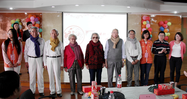 由校妇委会、校团委、老干部处共同开展“幸福编织,为爱传递温暖”——百条围巾赠送百位老干部活动,把庆祝活动的现场气氛推向高潮,一百条凝聚着浓浓爱意和温暖的围巾是由团委的“织知堂”、“女儿社”社团的大学生志愿者在妇委会老师亲自教授下,历时三个月,一针一线精心编织、精心包装而成,老师们带着学生为现场的老同志们一一送上了漂亮的围巾。师生们这份爱心让老同志们感到特别温暖,感动之情溢于言表。