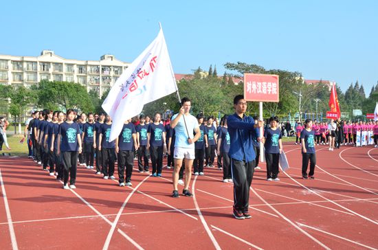 10月21日,一年一度的上海师范大学学生运动会在奉贤校区举行,在烟花、广播操、舞龙等精彩的开幕式表演中,对外汉语学院学子摆出iccs字样,高喊‘’传承传播立学立人,青春无畏逐梦扬威‘’的口号,开启征程。