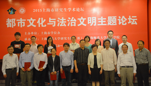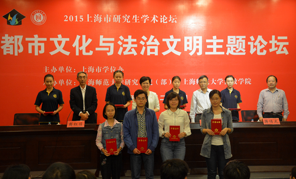10月24日,2015年上海市研究生学术论坛“都市文化与法治文明”主题论坛在校会议中心隆重举行。该论坛是上海市研究生教育创新计划的重要内容之一,由上海市学位委员会主办,我校研究生院(部)和法政学院承办。上海市学位办主任束金龙,我校校长朱自强,副校长、研究生院院长柯勤飞,研究生院(部)和法政学院负责人等出席了论坛。参加论坛的还有来自复旦大学、南京师范大学、华东政法大学、上海大学、上海海事大学、上海理工大学等兄弟高校和我校的导师代表、研究生代表,以及我校荣获本年度上海市研究生优秀学位论文的导师代表和研究生代表。200余名研究生同学与专家学者们相互交流思想,畅谈学术观点,取得了良好的效果。