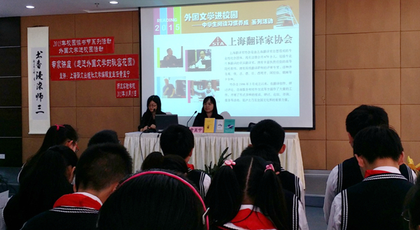 2015 年以来,由基教中心组织协办的“外国文学进校园——中学生阅读习惯养成系列活动”相继在上海师大附属学校开展。该活动是由上海翻译家协会、上海译文出版社《外国文艺》编辑部主办,上师大基教中心和有关附属学校协办。系列活动旨在结合纪念中国人民抗日战争胜利暨世界反法西斯战争胜利70周年,通过讲座与阅读相结合,让学生走进外国文学的“神秘花园”,畅游文学世界,感受文学魅力,在艺术美的世界里了解历史,铭记历史,开拓未来。