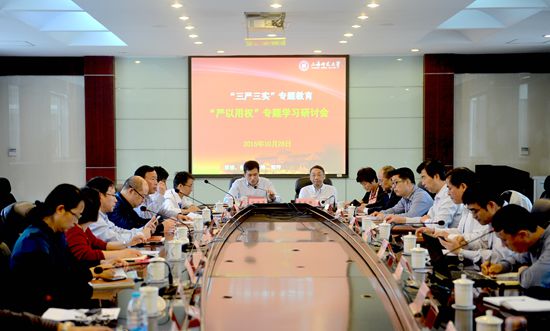 10月26日上午,学校在外宾楼101会议室召开“严以用权”专题学习研讨会。全体校党委中心组成员参加,校党委副书记、纪委书记秦莉萍,副校长高建华、刘晓敏、张峥嵘,总会计师曹光明等五位同志作重点发言,校长朱自强等进行了互动交流。会议由校党委书记滕建勇主持。