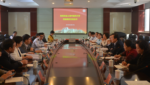 10月27日下午,上海中医药大学党委书记张智强、校长徐建光率副校长施建蓉、张瑾以及党委校长办公室、发展规划处、宣传部、教务处、学科建设办、学生处、校政处、人事处、基础医学院等部门和学院负责人来我校,就“十三五”规划编制工作进行交流探讨。校党委书记滕建勇、校长朱自强热情接待了张智强、徐建光等一行。副校长柯勤飞、刘晓敏,及学校办公室、宣传部、学工部(处)、研究生院(部)、教务处、人事处、内涵办负责人参加座谈交流。