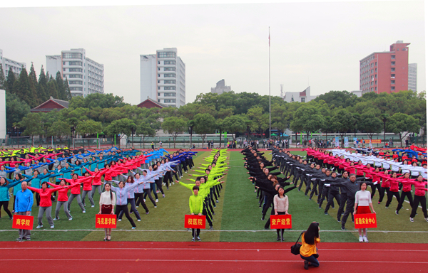 开幕式上,全校24个单位集体进行了第九套广播操的展示,数理学院、附中、图书馆、法政学院、机关、校医院、后勤实业中心、旅游学院获得前八名。同时“读万卷书 行万里路”为主题的健步活动启动,这也是我校今年的实事工程项目之一。