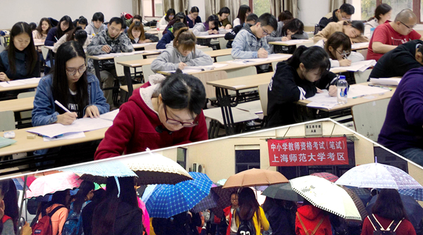 11月1日,2015年下半年中小学教师资格证笔试分别在我校徐汇校区和奉贤校区顺利开考。来自我校的3557名考生参加了本次考试。上海市教育考试院党委书记褚劲风及社考办主任戴芳芳在副校长康年的陪同下来到考试现场巡考。