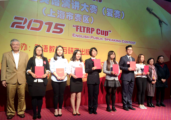 11月1日,2015“外研社杯”全国英语演讲大赛上海赛区复赛在上海商学院举行。我校外国语学院2014级英语师范专业学生邹青(下图左五)代表学校参赛,获得二等奖。