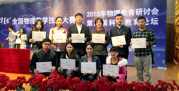 近日从数理学院传来喜讯:在11月6日举行的第三届“华夏杯”全国物理教学技能大赛暨2015年物理教育研讨会上,我校数理学院2012级物理学(师范)本科生赵美美获教学技能一等奖(研究生与本科生选手混编),冯优、顾圣元获二等奖;2013级物理课程论研究生朱丹、张超获教学技能一等奖,汤伶俐获教学技能二等奖,韩唯伟获教学技能三等奖,上海师范大学代表队荣获“团体优秀组织奖”。我校教师冯杰、倪敏被聘为“华夏杯”物理教学技能大赛评委,并获得“优秀指导教师”称号。